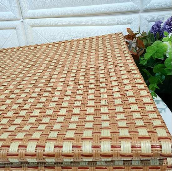 Chiếu điều hòa sợi mây tổng hợp được thiết kế với màu sắc hài hòa (vàng nâu) cùng những đường nét hoa văn đẹp và sang trọng. Chiếu gồm 2 lớp lớp sợi mây tổng