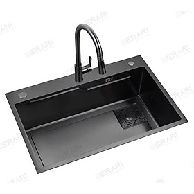 Thông tin chi tiết Chậu rửa 1 hố Nano đen cao cấp kèm chậu nhỏ bên trong mã GC.7545D thương hiệu GERARI + Model: GC.7545D + Tên hãng: GERARI + Chất liệu inox 304 phủ