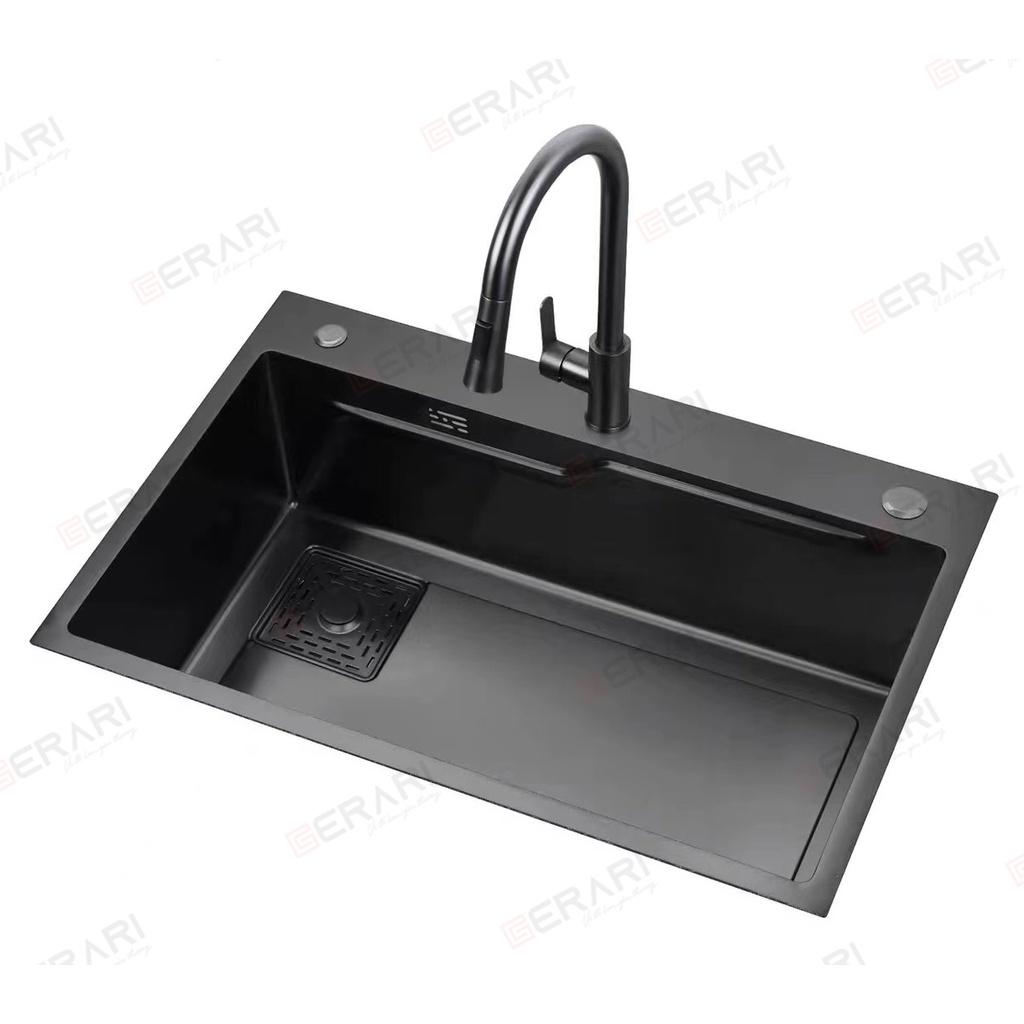 ✨{CHÍNH HÃNG} Chậu rửa 1 hố Nano đen cao cấp kèm chậu nhỏ bên trong mã GC.7545D thương hiệu GERARI