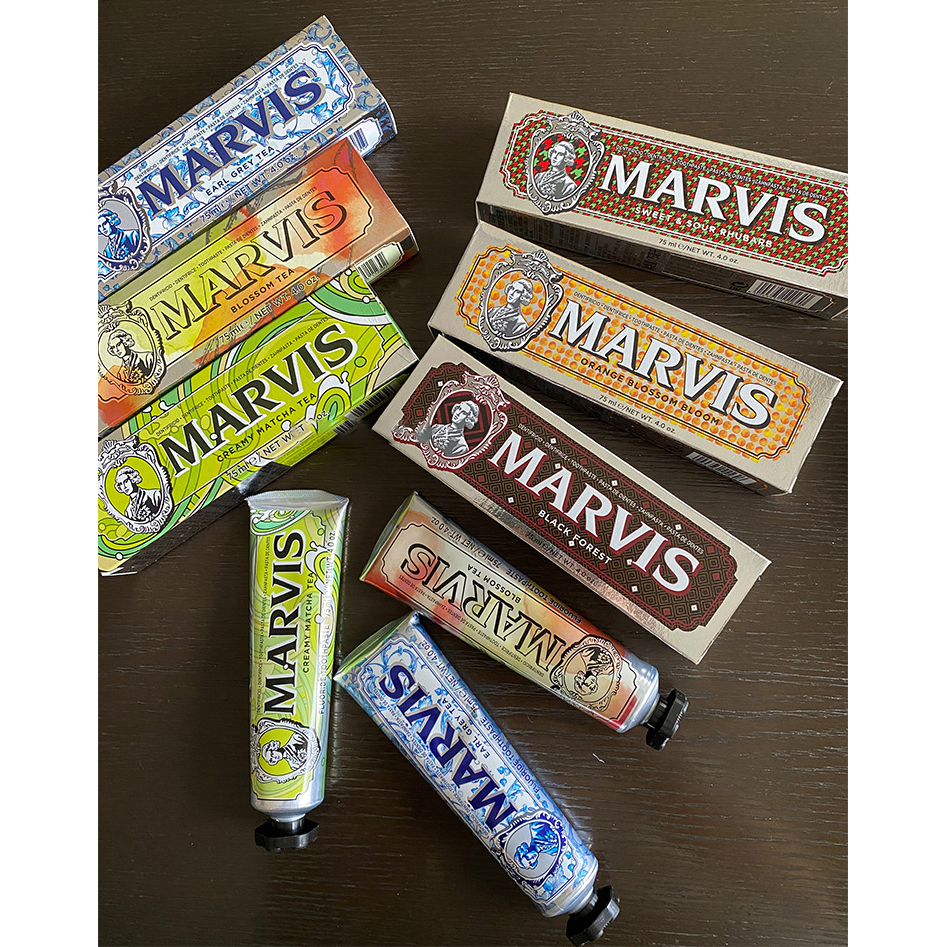 Kem Đánh Răng MarvisTea là sản phẩm của hãng kem danh tiếng Marvis được nhập khẩu từ Florence, Ý, Marvis là thương hiệu nha khoa cao cấp được yêu thích tại Ý trong nhiều thế hệ. Marvis được cung cấp với nhiều loại hương vị thơm và tuyệt vời, sáng tạo và thời trang — được tạo ra bằng cách bù đắp hương thơm của bạc hà để cung cấp sự tươi mát & sảng khoái. Công dụng của Kem đánh răng Marvis Tea Collection: