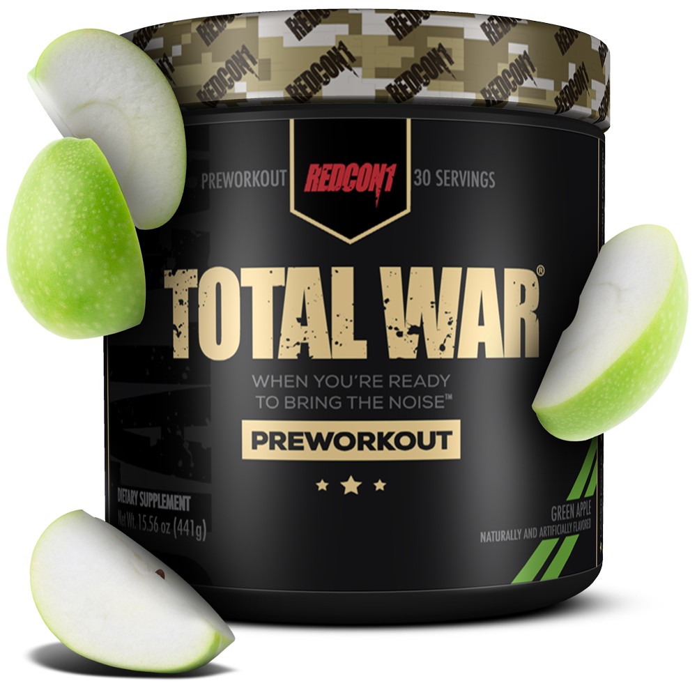 - Tăng tốc độ và luyện tập hiệu suất. Với sự kết hợp hài hòa giữa các chất lượng sinh ra cùng với chất lượng hỗ trợ tập trung, Total War là một Pre workout tuyệt vời cho một buổi tập hiệu quả. Một cho tất cả, tất cả trong một sản phẩm, Total War cho bạn một sức mạnh dồi dào và sung mãn . Điểm nổi bật Cung cấp nguồn năng lượng dồi dào, Redcon1 Total War giúp bạn lấy lại nguồn sức mạnh cho bản thân, bất kể thời gian của bạn là buổi sáng, giữa buổi hoặc buổi tối sau khi tan ca. You may be fast get back to style, the quality of tràn trề, kể cả khi mới vừa từ nơi làm việc về với một tâm trạng uể oải, mệt mỏi. Bạn có thể sẽ phải bất ngờ về sức mạnh của mình, không chỉ tập khoẻ hơn mà sức bền còn tốt bình thường 30 đến 40 phút. Và bạn sẽ cảm thấy nuối tiếc khi phải rời khỏi phòng tập thay vì mệt mỏi như trước đây. Bạn sẽ được trải nghiệm và chinh phục những mức tạ cao nhất của mình, điều mà trước đây bạn vẫn lưỡng lự vì không đủ sức. Cảm giác luôn như lần đầu sử dụng Là một người sử dụng pre workout chắc hẳn bạn sẽ lo lắng sợ bị chai lì, không còn cảm giác khi sử dụng thường xuyên thời gian dài. Với Total war bạn hoàn toàn có thể yên tâm. Cho dù đây là lần đầu tiên bạn sử dụng hay là đã quá quen thuộc trong một thời gian dài. Total War vẫn sẽ khiến bạn bùng nổ như một chiến binh uy mãnh. Thành phần Caffeine Tăng cường sự tỉnh táo, tập trung cao độ, giúp bạn đánh bay cơn mệt mỏi, uể oải và hoàn thành các bài tập dễ dàng. 320mg Caffeine hoạt tính trên tổng 350mg thành phần, bao gồm: