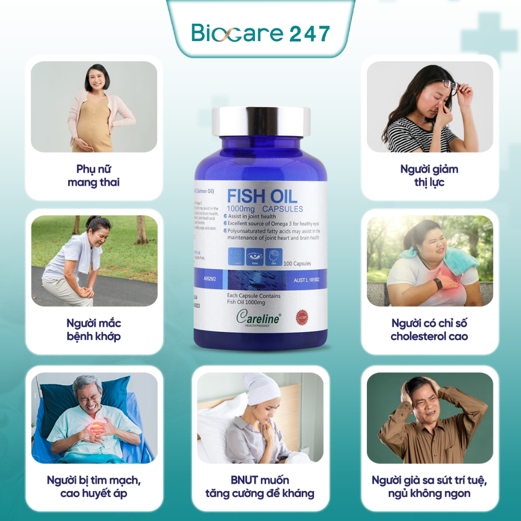 [Chính hãng] dầu cá hồi Úc Careline bổ sung DHA, EPA, tăng cường não bộ, bảo vệ thị lực & tim mạch