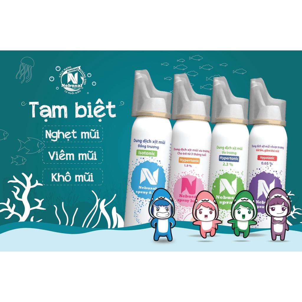 Xịt mũi Nebusal Spray là xịt mũi dung dịch nước muối biển hàng đầu tại Việt Nam, được sản xuất theo dây chuyền đạt chuẩn GMP-WHO, an toàn với trẻ nhỏ và cả người lớn