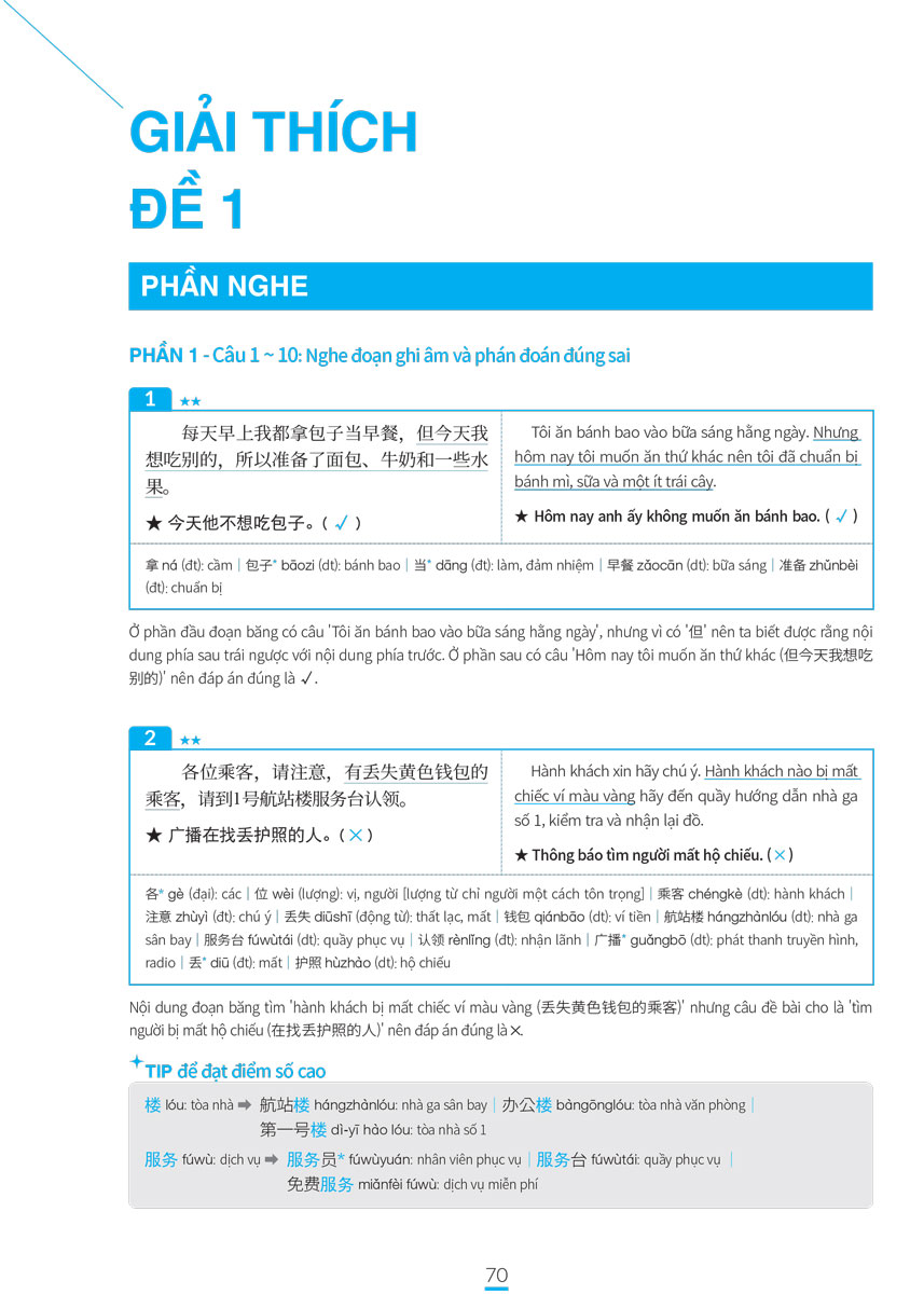 ★★ là câu hỏi ở mức độ có thể đậu và ★★★ là câu hỏi để đạt điểm cao.