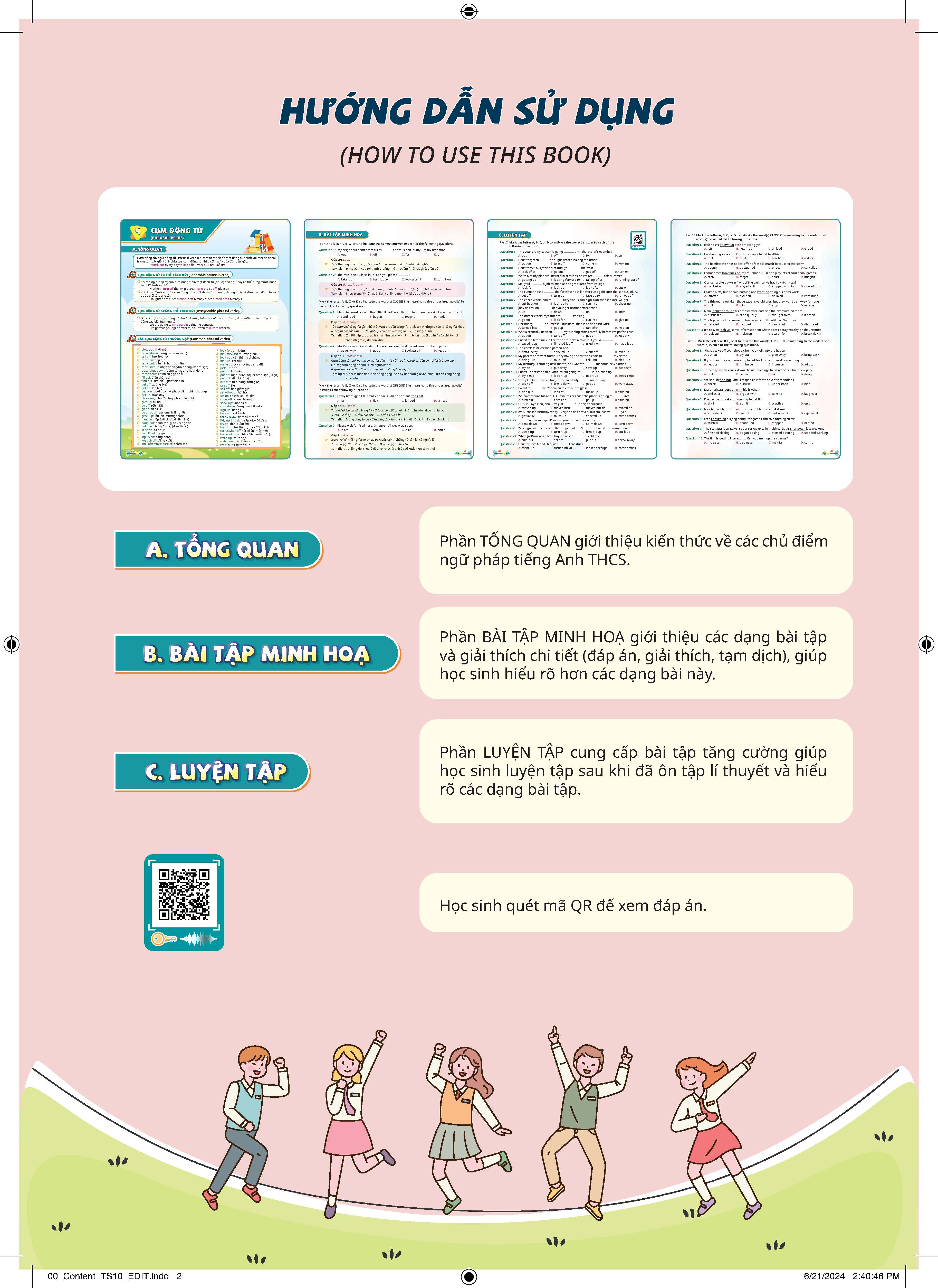 Chinh phục kì thi Tiếng Anh - Tuyển sinh 10 tập 1 được biên soạn nhằm trang bị cho các em học sinh nguồn tài nguyên bổ trợ phong phú theo chương trình học và giúp các em chuẩn bị tốt nhất cho kì thi tuyển sinh lớp 10 môn tiếng Anh. Sách bao gồm phần tóm tắt lý thuyết và bài tập thực hành được thiết kế bám sát các dạng câu hỏi trong đề thi tuyển sinh lớp 10, tạo cơ hội cho các em làm quen với các định dạng đề thi cũng như củng cố kiến thức từ vựng, ngữ pháp, phát âm và thực hành các chiến lược làm bài một cách hiệu quả.