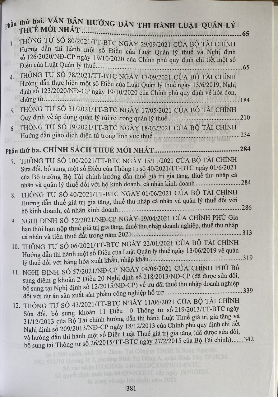 Phần thứ hai. VĂN BẢN HƯỚNG DẪN THI HÀNH LUẬT QUẢN LÝ THUẾ MỚI NHẤT