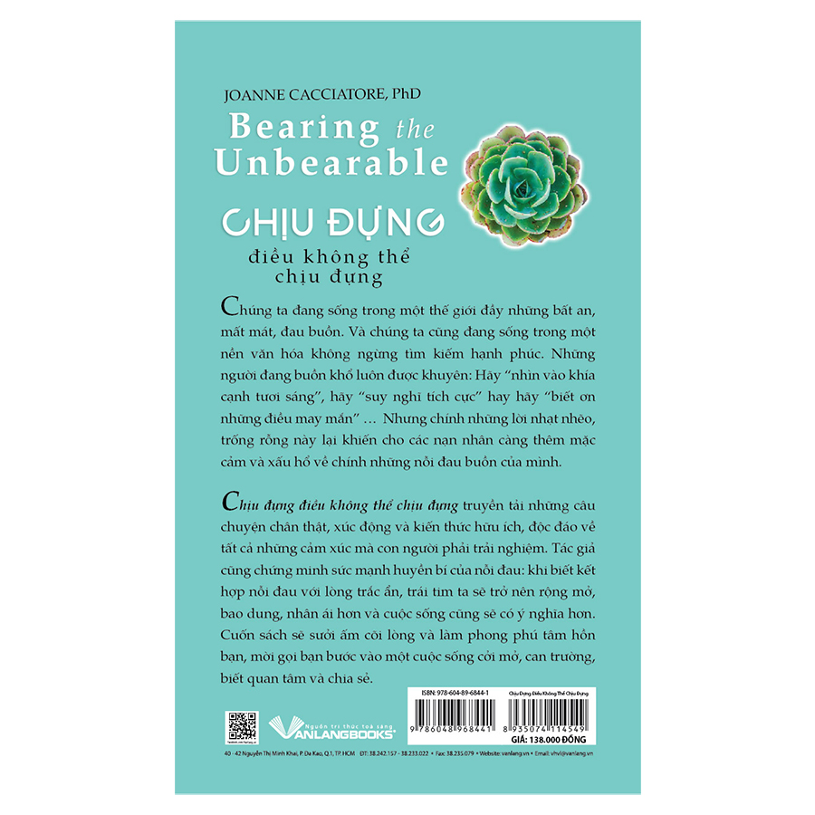 Chịu đựng điều không thể chịu đựng truyền tải những câu chuyện chân thật, xúc động và kiến thức hữu ích, độc đáo về tất cả những cảm xúc mà con người phải trải nghiệm. Tác giả cũng chứng minh sức mạnh huyền bí của nỗi đau: khi biết kết hợp nỗi đau với lòng trắc ẩn, trái tim ta sẽ trở nên rộng mở, bao dung, nhân ái hơn và cuộc sống cũng sẽ có ý nghĩa hơn. Cuốn sách sẽ sưởi ấm cõi lòng và làm phong phú tâm hồn bạn, mời gọi bạn bước vào một cuộc sống cởi mở, can trường, biết quan tâm và chia sẻ.