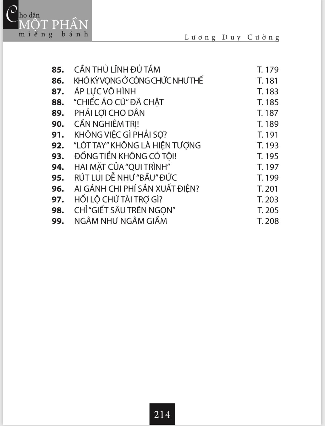 Cứ như vậy, ấn phẩm này sẽ là 99 câu chuyện thời sự xảy ra ở từng thời điểm khác nhau. Đó cũng là cách nhìn nhận và lý giải thẳng thắn những vấn đề đang được dư luận chú ý, cùng với đó là hành văn khúc chiết và đôi khi dí dỏm của tác giả sẽ giúp độc giả thích thú với ấn phẩm này.