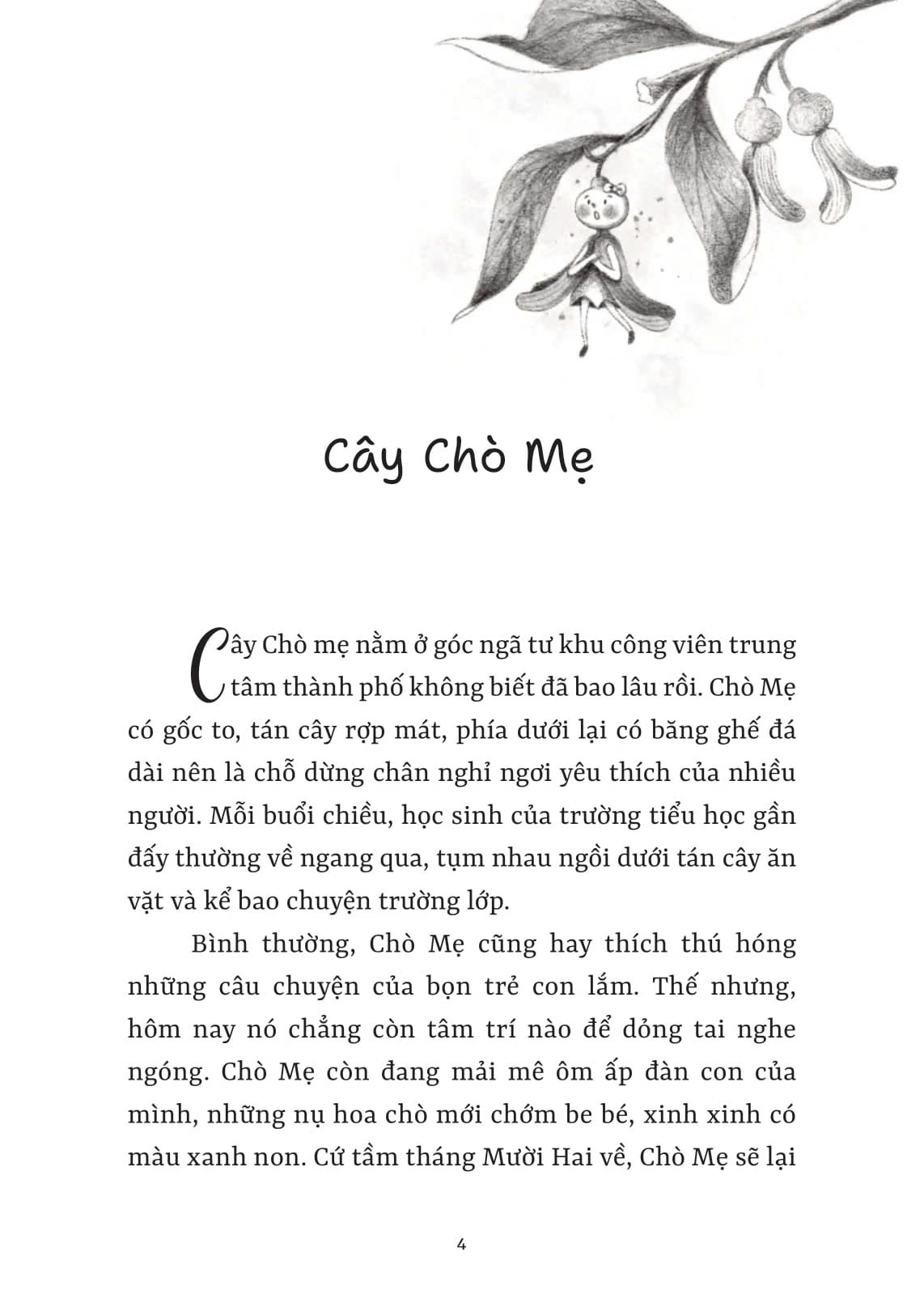 “Buổi chiều hôm ấy, khi thành phố lên đèn, Chò Nâu ngắm nhìn con đường thơ mộng đẹp đẽ. Dưới vòm me, những tán lá như cất lên khúc hát du dương. Họ nhà me đang sống một cuộc đời ý nghĩa, đem bóng mát cho đời và cả nét thơ cho thành phố nhộn nhịp.