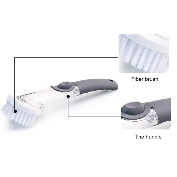Sử dụng dễ dàng: tháo miếng cọ, đổ nước rửa vào phần chứa ở tay cầm, lắp lại & không lo hết nước rửa.