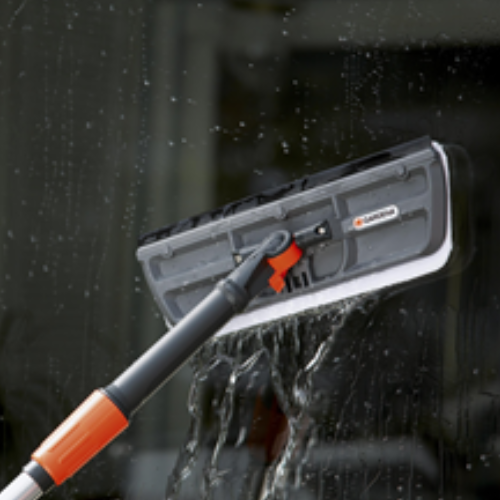 Và tùy theo nhu cầu và chiều cao của người sử dụng để kết hợp với cán nước Gardena cho nhu cầu làm sạch cửa kính,