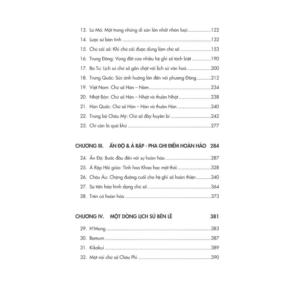 Cuốn sách ghi lại lịch sử sáng tạo và cải tiến chữ số của nhân loại. Đó là một hành trình gian nan và vô cùng dài lâu. Sau nhiều nghìn năm, trải qua sự tồn tại và diệt vong của nhiều nền văn minh, nhiều đế chế từ đông sang tây, cuối cùng cả nhân loại ngày nay đều chia sẻ và sử dụng chung một thứ chữ số. Và còn hơn thế, lịch sử của các chữ số còn hé lộ cho chúng ta vô số những điều thú vị của lịch sử nhân loại.
