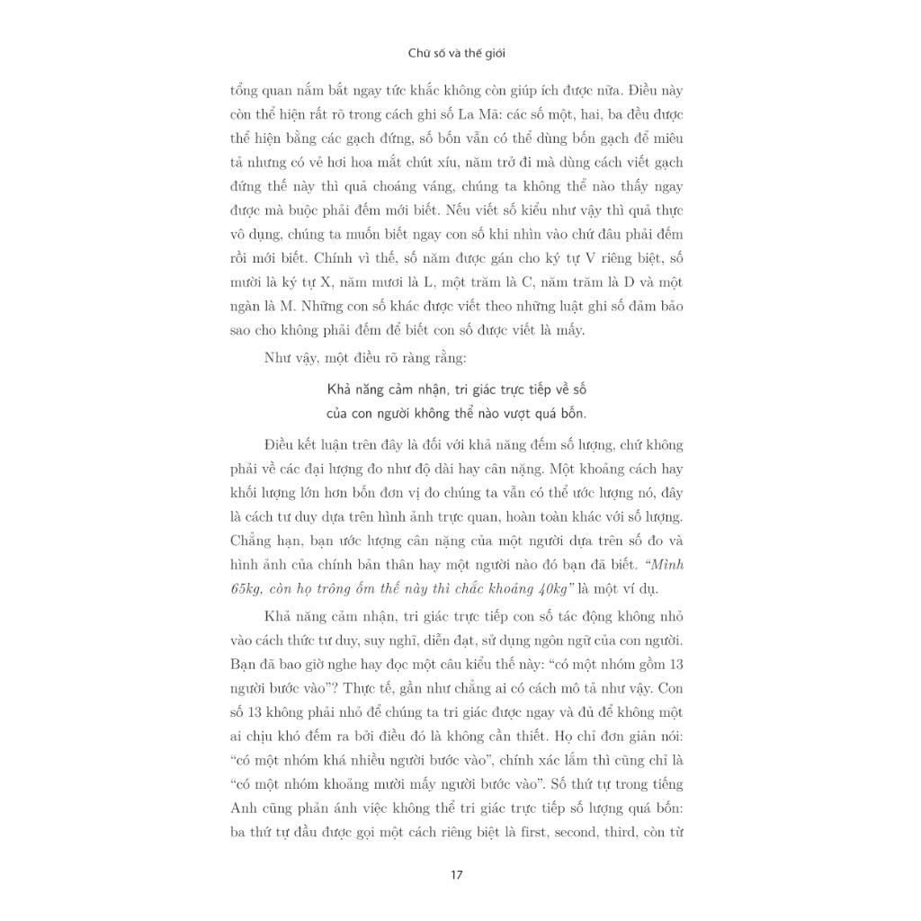 Tất cả những điều trên cho chúng ta một ý niệm, rằng chữ số có lịch sử của nó, và lịch sử ấy không tách rời, thậm chí gắn chặt số phận mình với lịch sử nhân loại. Cuốn sách Chữ số và thế giới – Nguồn gốc bị lãng quên đưa bạn vào cuộc hành trình xuyên không gian và thời gian để tìm hiểu gần như toàn bộ các con số đã xuất hiện trong lịch sử nhân loại, từ chữ số của các đế chế hùng mạnh đến chữ số dùng trong các bộ lạc hẻo lánh bên bờ Thái Bình Dương. Loài người hôm nay đã phát triển đến một tầm mức rất cao, nhưng chắc chắn chúng ta sẽ không thể thu gặt thành quả đó nếu không có hành trình hàng ngàn năm kiếm tìm và cải tiến chữ số của người xưa.
