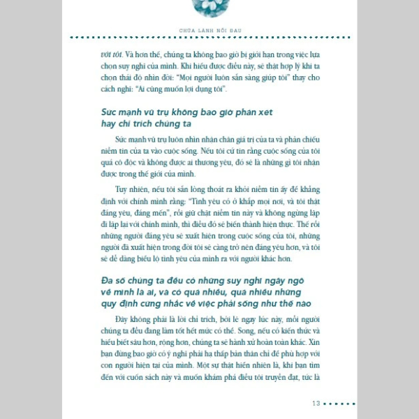Nếu bạn vẫn còn băn khoăn chưa biết nên bắt đầu từ đâu và nên sử dụng phương pháp nào tốt nhất để vực dậy chính mình, thì hãy thử đọc quyển sách Chữa Lành Nỗi Đau của tác giả Louise L. Hay. Cuốn sách này sẽ giúp bạn khơi dậy những năng lực thực sự đang tiềm ẩn bên trong mình. Sức mạnh đó sẽ tác động không chỉ đến suy nghĩ và cuộc sống của riêng bạn mà còn ảnh hưởng trực tiếp đến những người mà bạn tiếp xúc hàng ngày.
