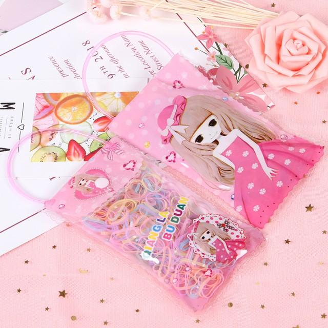Set 100 chun buộc tóc màu kèm túi zip