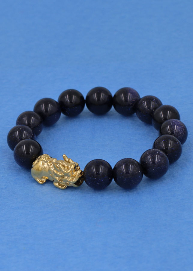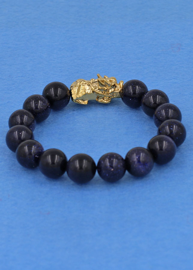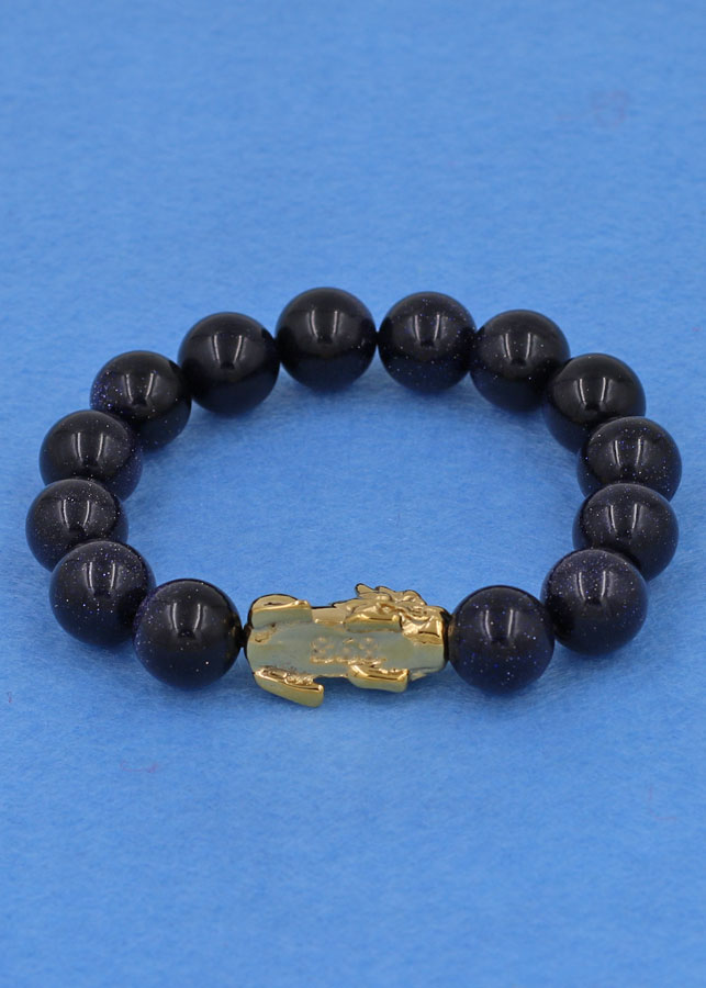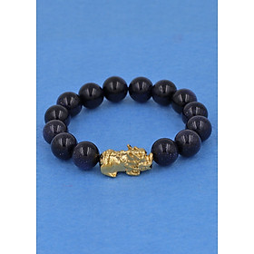 ✨Chuỗi đeo tay đá lam sa 12 ly - cẩn Tỳ Hưu inox vàng VLSTHV12