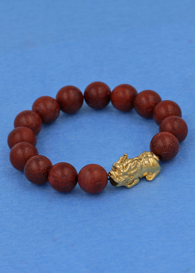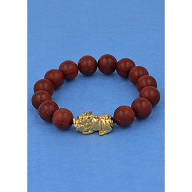 ✨Chuỗi đeo tay gỗ đỏ 12 ly - cẩn Tỳ Hưu inox vàng VGOTHV12