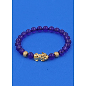 ✨Chuỗi đeo tay Thạch Anh Tím 6 ly cẩn Tỳ Hưu inox vàng VTAITHHBV6 - hợp mệnh Hỏa, mệnh Thổ
