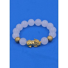 ✨Chuỗi đeo tay Thạch Anh Trắng 12 ly - cẩn Tỳ Hưu Phong thủy inox vàng VTATTHHBV12 - hợp mệnh Kim, mệnh Thủy