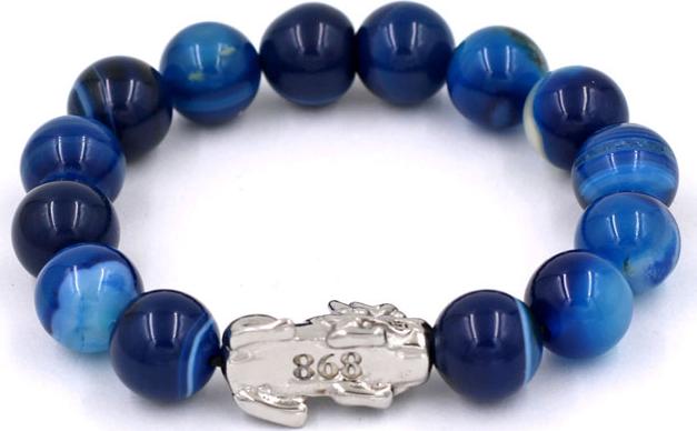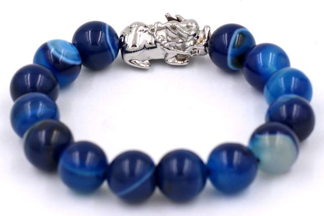 ✨Chuỗi đeo tay thạch anh xanh dương sọc 12 ly - cẩn Tỳ Hưu inox VTAXDSTHT12 - hợp mệnh Mộc, mệnh Thủy
