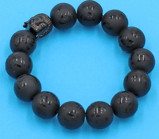 ✨Chuỗi tay thạch anh đen Phật Chú khắc mờ 14 ly - cẩn hạt Như Lai inox đen VTEPCMNLE14 - hợp mệnh Thủy, mệnh Mộc