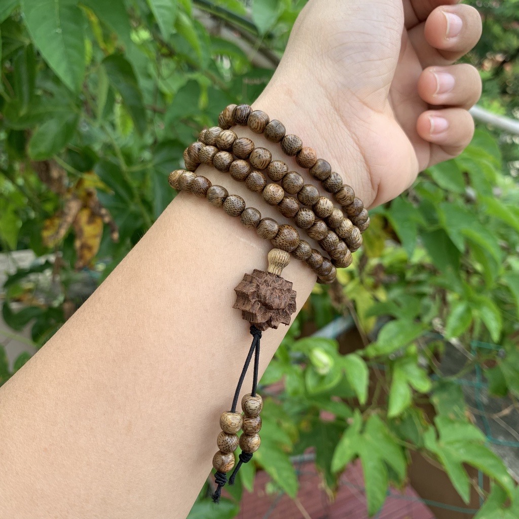 Mô tả sản phẩm: Vòng tay Trầm Hương chuỗi tràng 108 hạt/6mm - tặng kèm thêm dây và kim để thay thế.