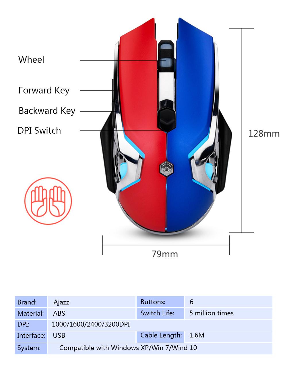 It is a professional esport gaming mouse: 3200 DPI high precision, 4-level adjustable DPI, cool breathing LED light, ergonomic design, bilateral anti-slip design, 6 buttons, game-grade scroll wheel, long keystroke life, hard-wearing braided-fiber cable with