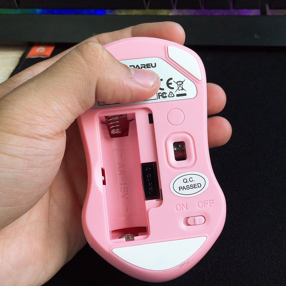 Mô Tả Sản Phẩm Mã hàng: LM115G Pink Hãng sản xuất: DAREU Mô tả sản phẩm Sensor: PAW3512 Sóng 2.4G DPI: 800-1200-1600 Kích thước: 107.5*59.15*38.29mm Pin: 01* AA Trọng lượng: 90g +/- 10g