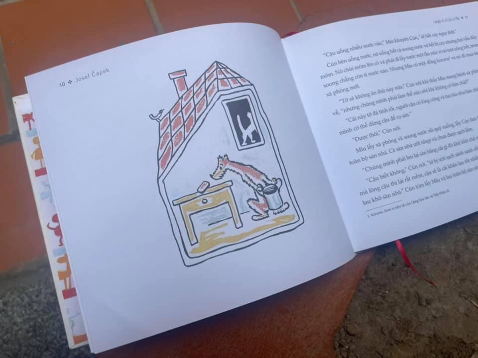 Khác hẳn với những câu hỏi ở trên, dưới ngòi bút của tác giả Josef Capek đã vẽ lên hai nhân vật Cún và Miu là hai con vật chó và mèo. Chúng sống với nhau rất hòa thuận dưới một mái nhà. Chúng cùng nhau làm tất cả mọi việc như con người. Thông qua các tình tiết câu chuyện, cùng các hình ảnh minh họa sinh động sẽ giúp chúng ta trả lời được các câu hỏi về hai bạn Cún và Miu: Cún và Miu cọ rửa sàn nhà như thế nào? Cún đã làm rách quần như thế nào? Cún và Miu làm gì vào dịp lễ Giáng sinh? Hay cách mà Cún và Miu làm bánh gato ra sao? Bằng việc nhân cách hóa hai nhân vật Cún và Miu, thông qua các sinh hoạt thường ngày mà hai bạn ấy cùng hỗ trợ, giúp đỡ nhau để làm việc. Câu chuyện kể về Cún và Miu cũng hé lộ cho người dọc biết được thông tin rằng chó và mèo vốn ngày xưa chơi thân với nhau, nhưng do bản chất là chó thì luộm thuộm, bừa bãi, bạ đâu nằm đó, còn mèo thì ưa sạch sẽ, gọn gàng nên sau này trở lên “ Ghét nhau như chó với mèo”.