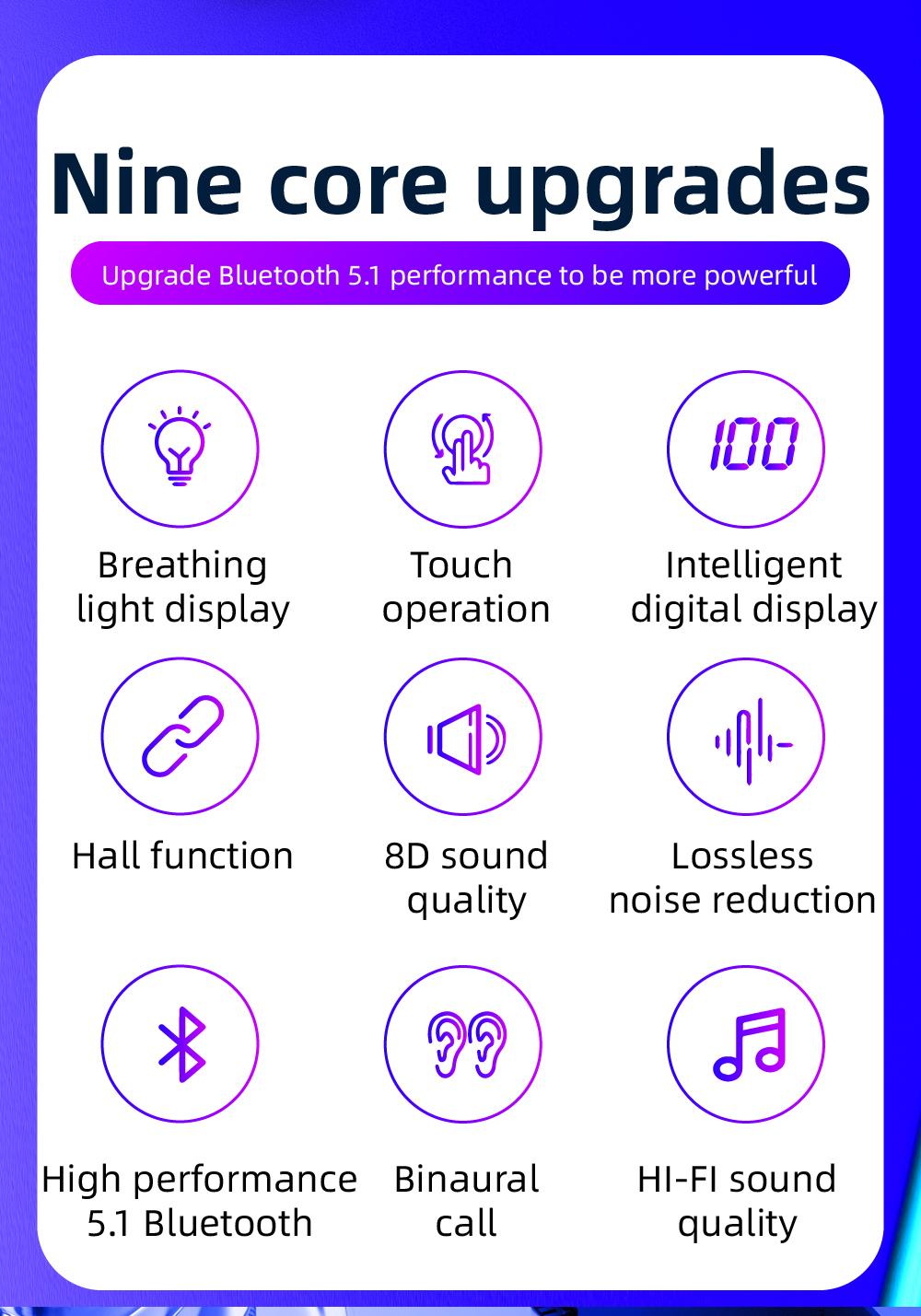 Features: BT 5.0 brings high data transfer speed, no latency, stable connection and low power consumption. Multi-functional Touch control let you answer/reject calls, play/pause songs, wake up voice assistant, by touching these in-ear wireless headphones