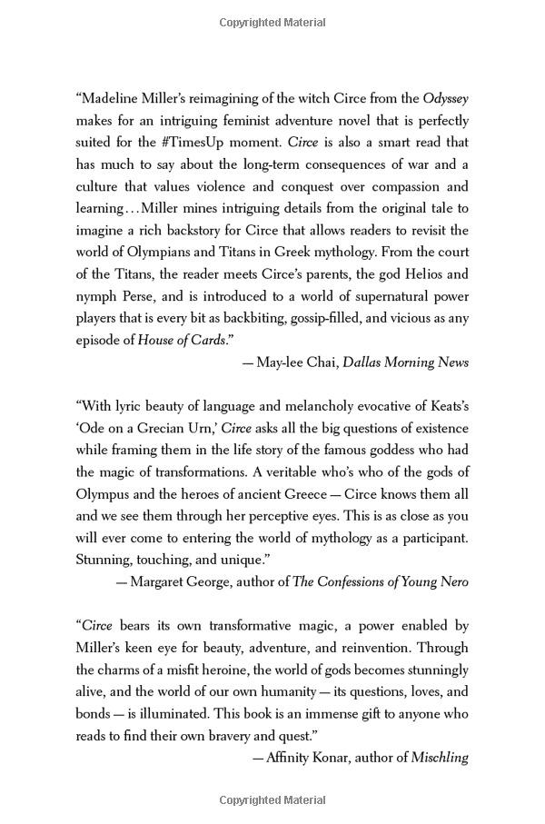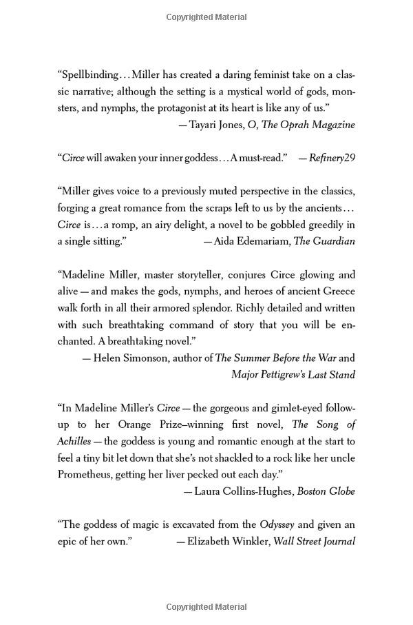 Circe The captivating Sunday Times and New York Times number one bestseller by the Orange Prize-winning author of The Song of Achilles; 'spellbinding a thrilling tour de force of the imagination' ...
