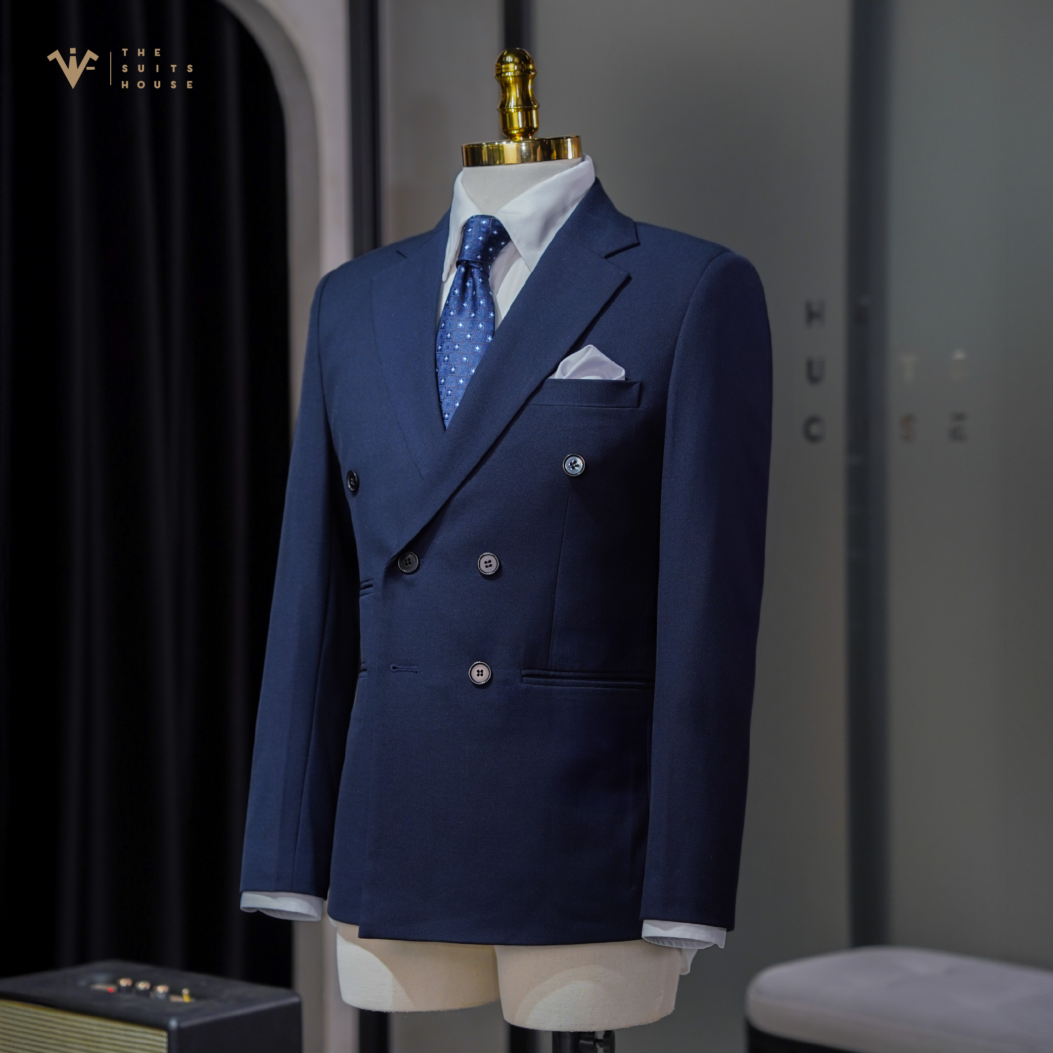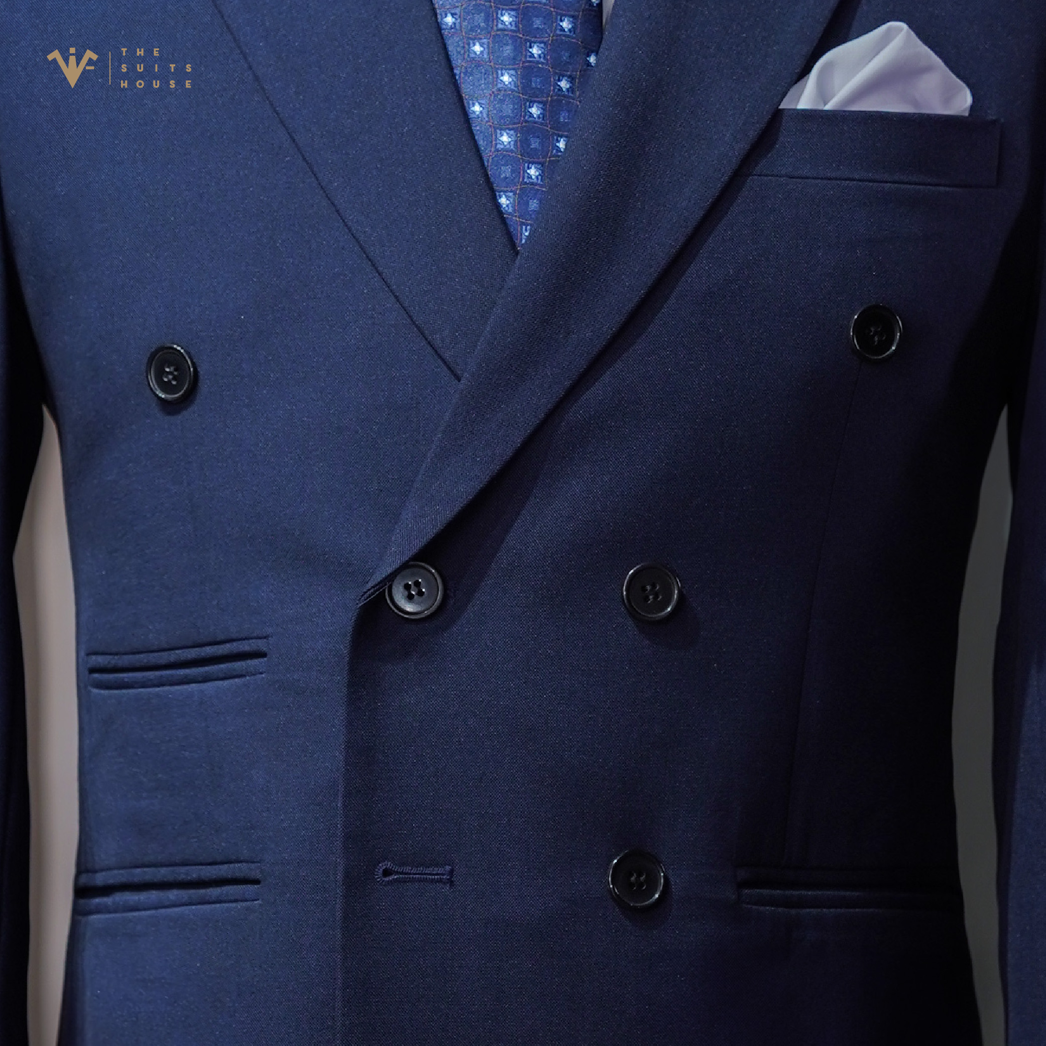 THÔNG TIN SẢN PHẨM - Tên sản phẩm: Bộ suit XANH NAVY KẺ ẨN, 6 KHUY 3 TÚI - Thương hiệu: THE SUITS HOUSE - Xuất xứ: Việt Nam - Chất liệu: Vải sợi len