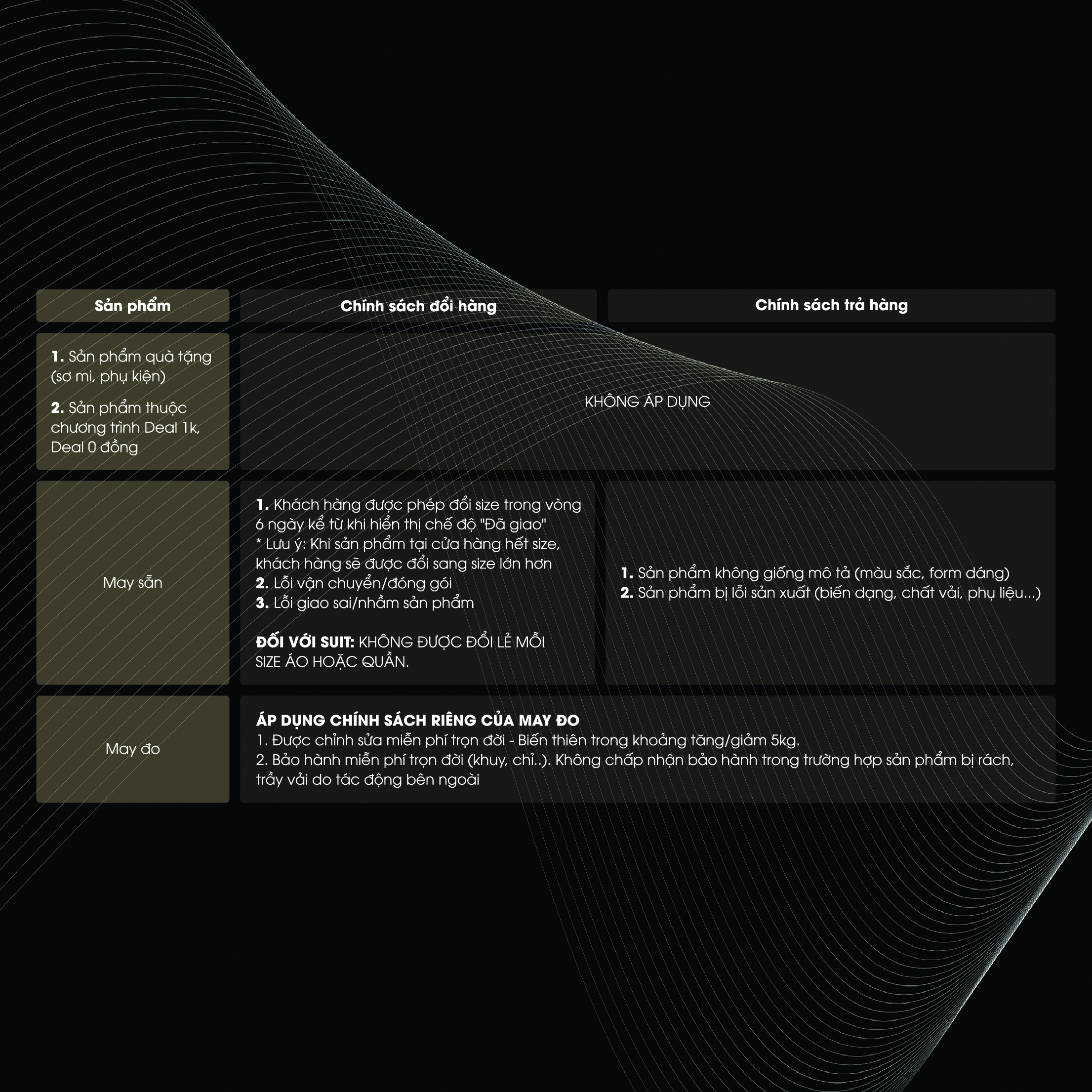 - Size: S M L XL XXL • Một bộ suit bao gồm: