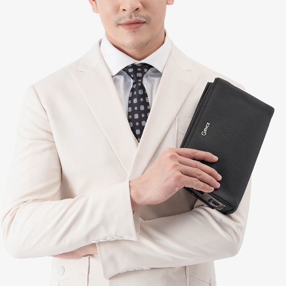- Xuất sứ: GENCE Việt Nam - Mã SP: RB03 - Sử dụng: Clutch cầm tay, đeo tay cho nam - Kích thước: 21cm (Dài) x 13cm (Cao) x 5cm(rộng) Thiết kế với form dáng cầm tay có khóa
