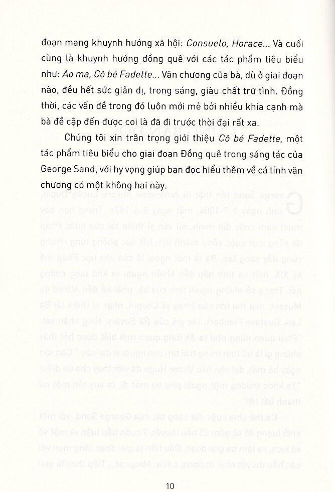 Cô Bé Fadette cuốn sách về tình yêu chân thành trong sáng đã được vẽ nên một cách lãng mạn trên cảnh trí đồng quê khoáng đạt, thơ mộng ở miền Nam nước Pháp, nơi mà những truyền thuýêt và sự điền viên thanh thản của xứ sở quê hương Berry đã truyền cảm hứng để George Sand viết nên một kiệt tác của văn học Pháp thế kỷ XIX.