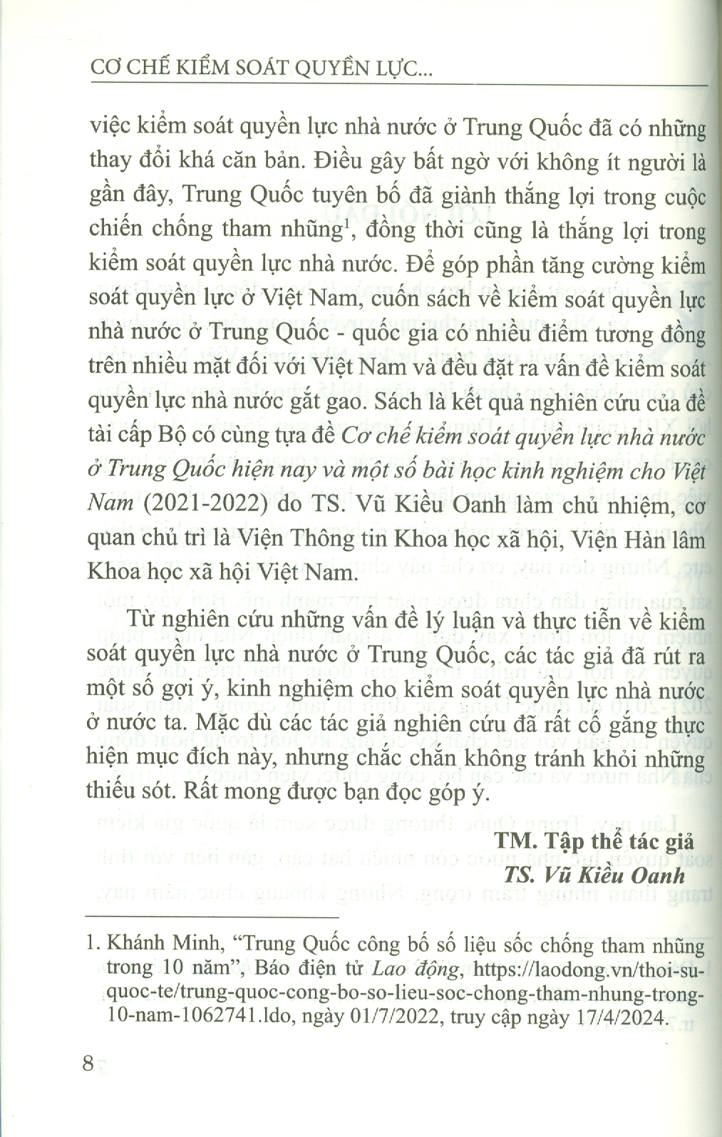 ✨Cơ Chế Kiểm Soát Quyền Lực Nhà Nước Ở Trung Quốc Và Một Số Kinh Nghiệm Cho Việt Nam - TS. Vũ Kiều Oanh chủ biên