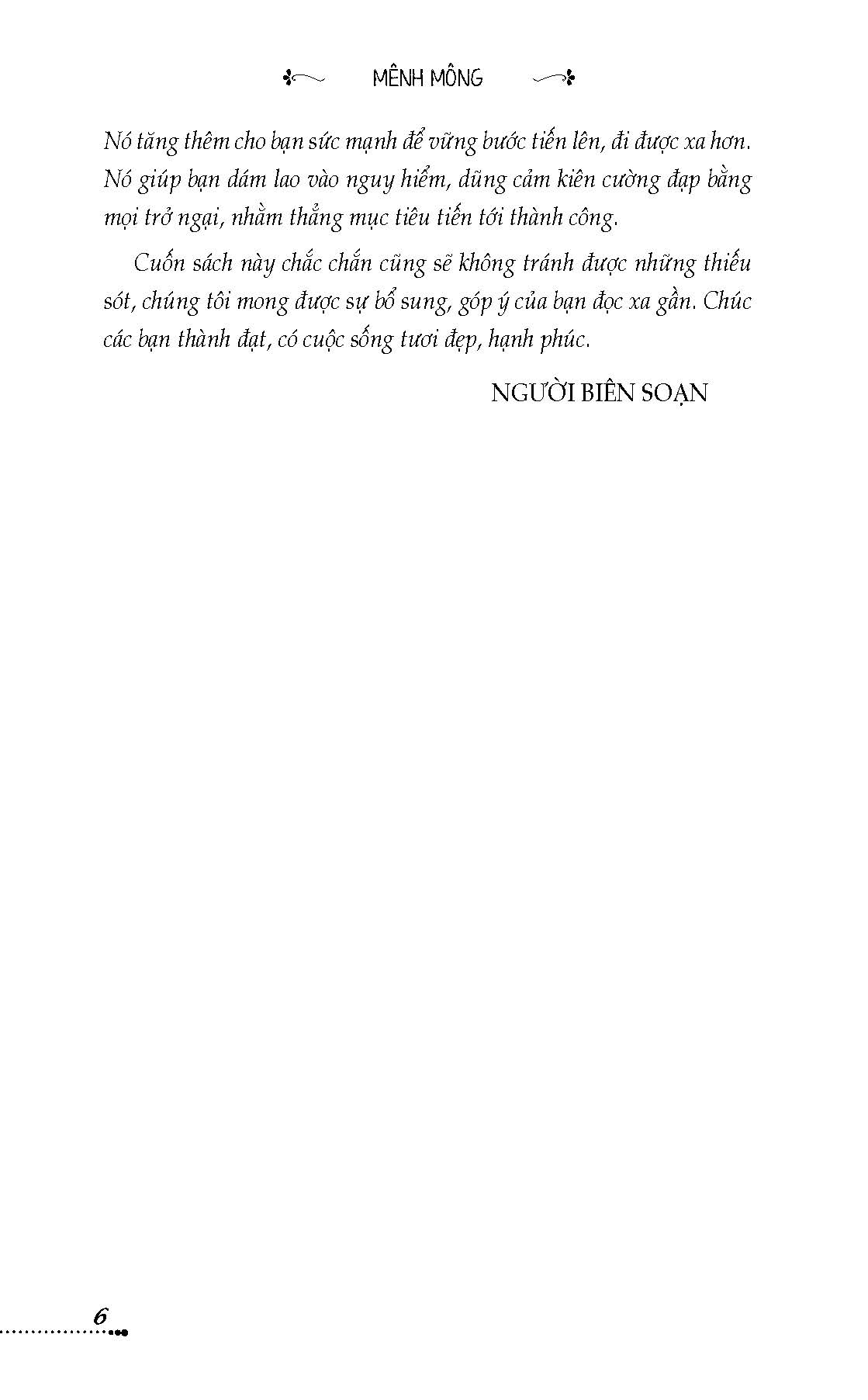 Những bài học sâu sắc cùng những lời khuyên chân thành về sự kiên rì, nỗ lực, sống có ý chí, tôi luyện để có lòng tin, sự nhiệt tình, bền chí, không cam chịu số phận, giữ cho tâm hồn luôn trong sáng, cố gắng phấn đấu, luôn chủ động thay đổi được vận mệnh của mình để có cuộc sống tươi đẹp, thành công và hạnh phúc.