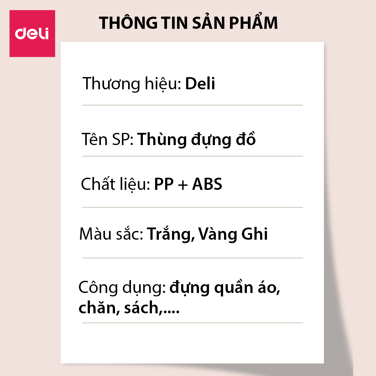 Deli Home Living sẽ mang cho bạn một trong những trải nghiệm về tiện ích đời sống hàng ngày. Với phương châm sản xuất những sản phẩm chất lượng tốt và luôn đặt khách hàng làm trọng tâm, sứ mệnh của Deli là làm hài hòng người tiêu dùng toàn cầu với những sản phẩm chất lượng cao, độ tin cậy tuyệt đối và thân thiện với người dùng.