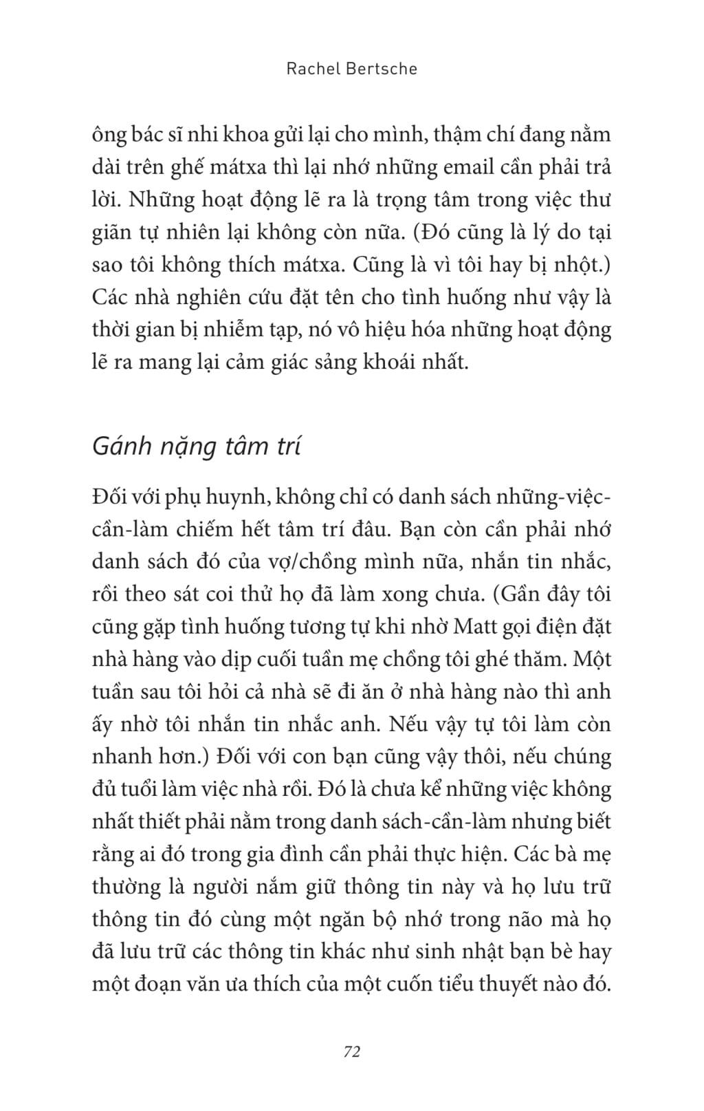 Cuốn sách nói về cách các bậc cha mẹ hiện đại sử dụng thời gian khi không bận chăm con hay bận làm việc. Phần Một (“Thời gian đâu hết rồi?”) là phần phân tích sâu lý do tại sao các bậc cha mẹ lại cho rằng họ không có được thời gian cho bản thân m.ình và tại sao mất đi thời gian giải trí lại là chuyện nghiêm trọng. Phần này nghiên cứu thực tế các bậc cha mẹ đang sử dụng thời gian vào những việc gì, khuyến khích họ nên dành thời gian cho bản thân và đưa ra những giải pháp thiết thực.