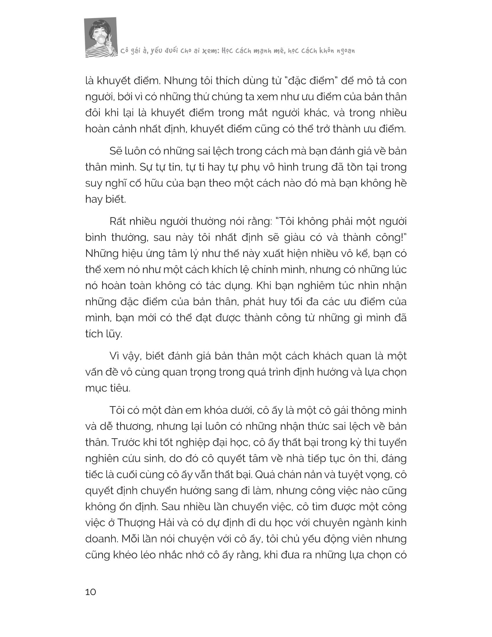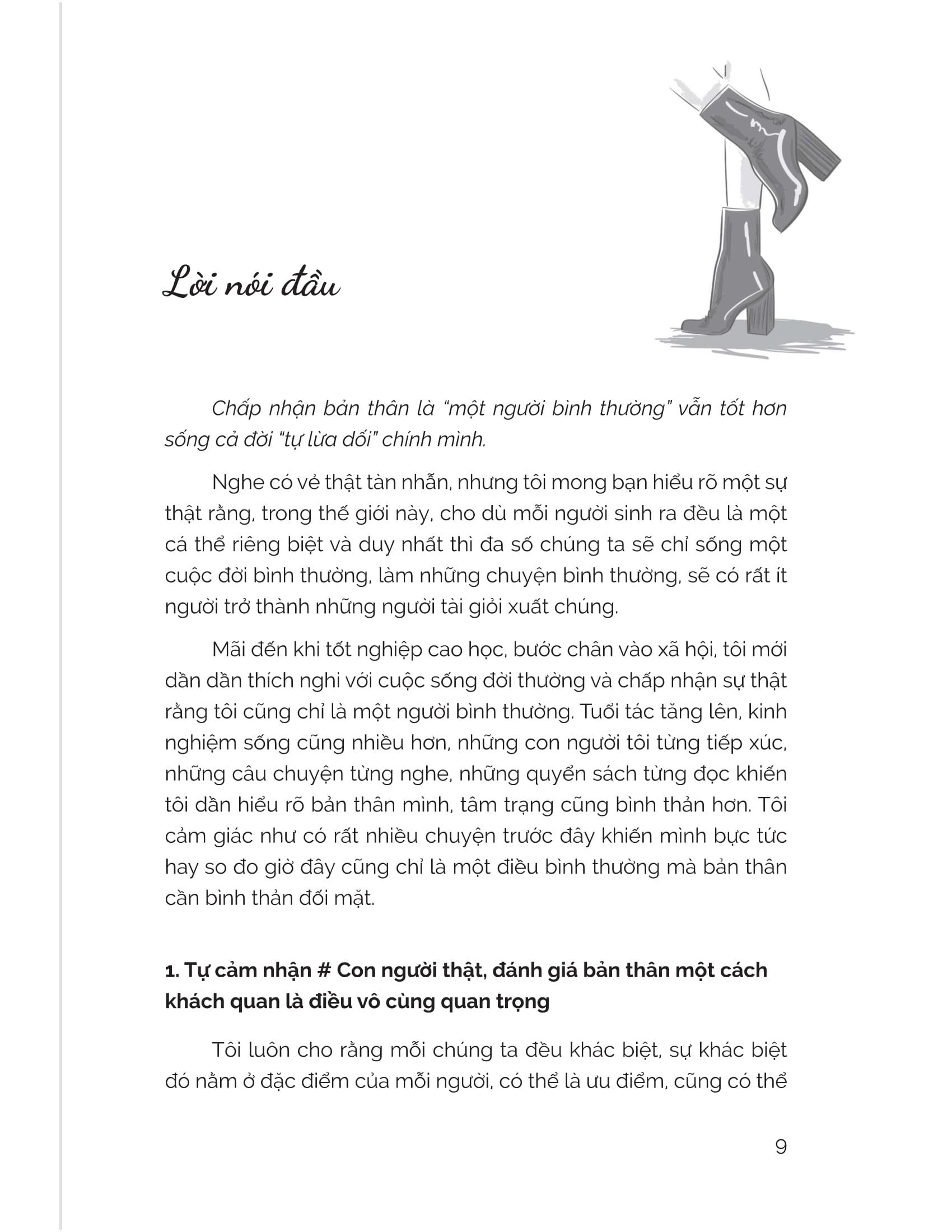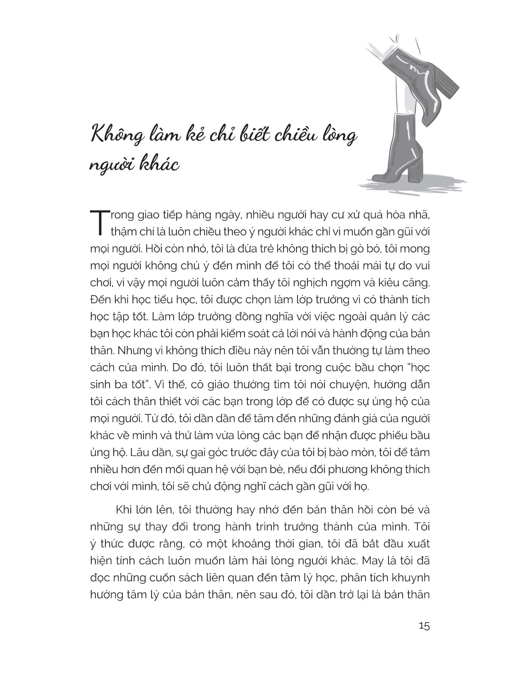 Tôi luôn hy vọng những cô gái đang theo dõi cuốn sách này có thể ít bị tổn thương nhất trong các mối quan hệ. Giữa sự ồn ào náo nhiệt của thế giới này, hãy cứ giữ cho mình một trái tim yên vui và điều làm nên sự thu hút nhất của người phụ nữ hiện đại chính là độc lập, tự chủ và có chính kiến riêng của mình.