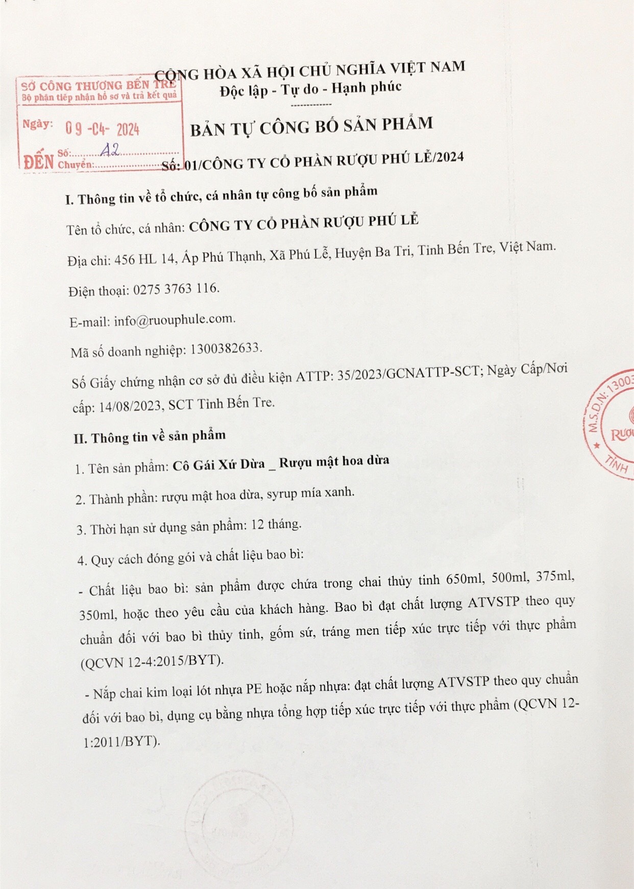 RƯỢU PHÚ LỄ - KHƠI BẢN SẮC, TOẢ TINH HOA RƯỢU VIỆT Công ty Cổ phần Rượu Phú Lễ là công ty sản xuất rượu Việt Nam có trụ sở chính tại số 456 HL