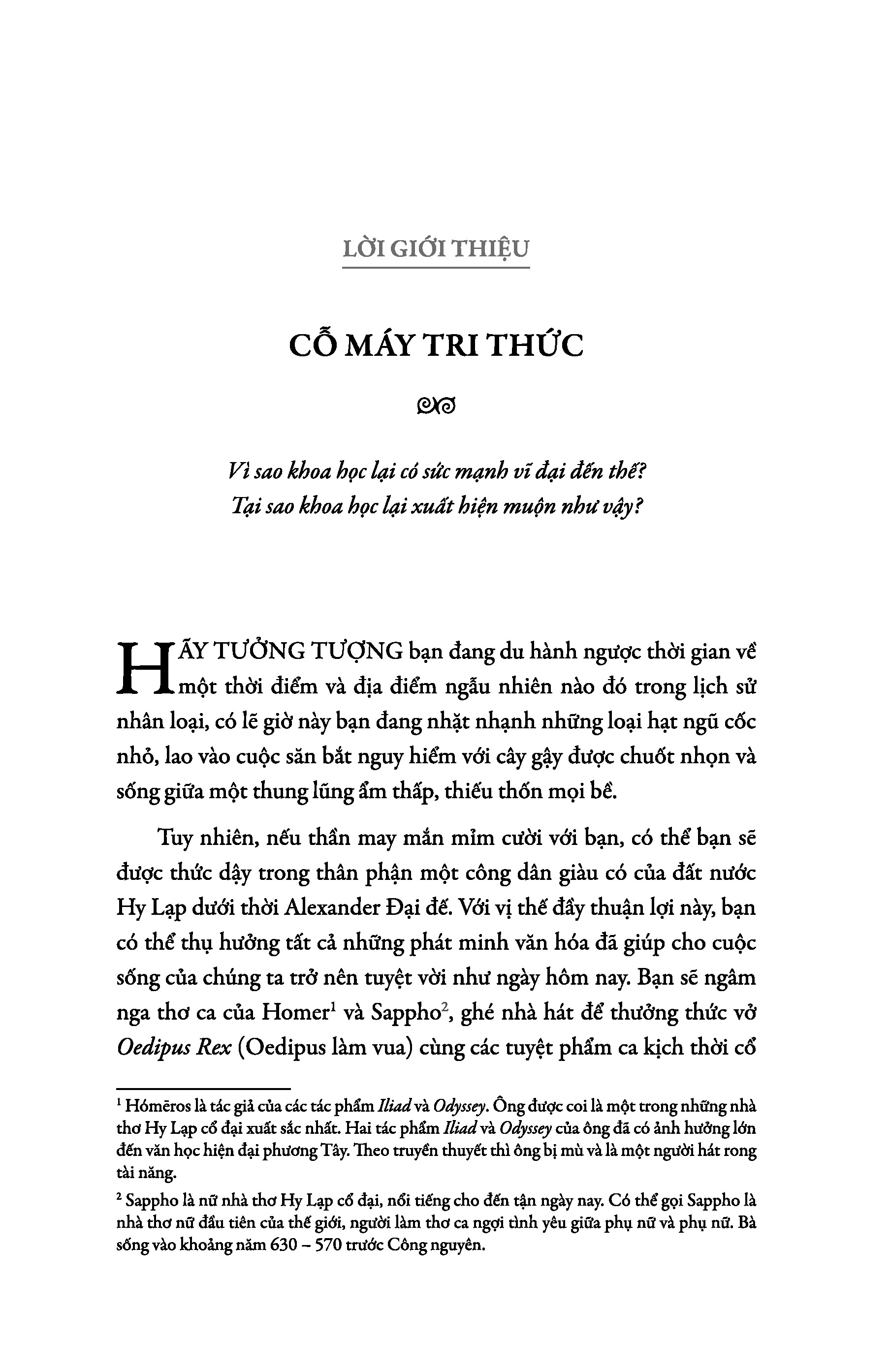 Đây là cuốn sách thay đổi hoàn toàn cách nhìn nhận của chúng ta về nguồn gốc và cấu trúc của khoa học: Vì sao khoa học lại quyền năng đến thế? Vì sao lại mất thời gian nhiều đến như vậy – hai nghìn năm sau khi triết học và toán học ra đời – thì nhân loại mới bắt đầu sử dụng khoa học để học hỏi và nghiên cứu những bí mật vũ trụ?