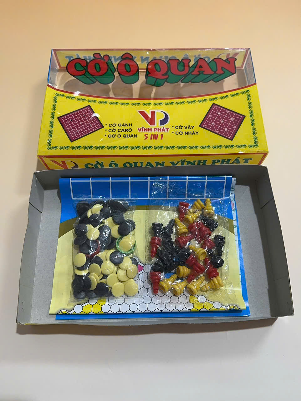 - Bộ cờ ô quan 5 trong 1 (Ô ăn quan, cờ vây, caro, cờ nhảy, cờ gánh) mang tới cho bé và những người bạn của mình những phút giây thoải mái, thư thái và vui vẻ bên những trò chơi dân gian đầy thú vị.