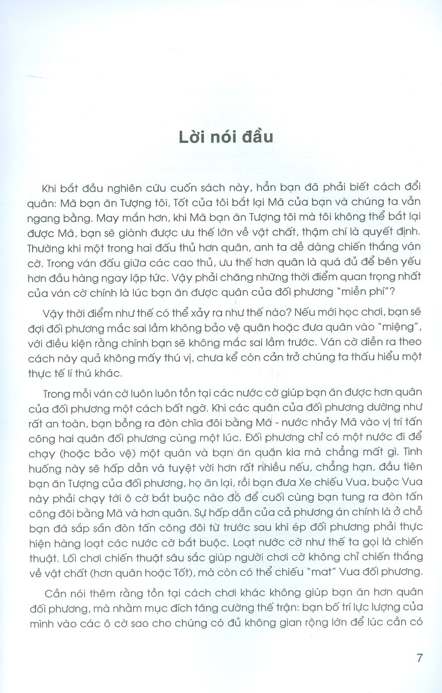 Cờ Vua Tập 3 - Chiến Thuật: Kỹ Thuật Tác Chiến Khi bắt đầu nghiên cứu cuốn sách này, hẳn bạn đã phải biết cách col quân: Mã bạn ăn Tượng Tôi, Tốt của tôi