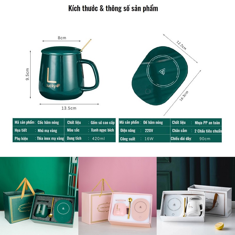 CỐC ĐIỆN CẢM ỨNG LUCKY TẶNG KÈM ĐẾ ĐIỆN TỪ HÂM NÓNG SIÊU TỐC Cốc Uống Cafe Uống Trà Kèm Đế Hâm Nóng Tặng Kèm Thìa Mạ Vàng Chất liệu: Sứ tráng men Dung tích:
