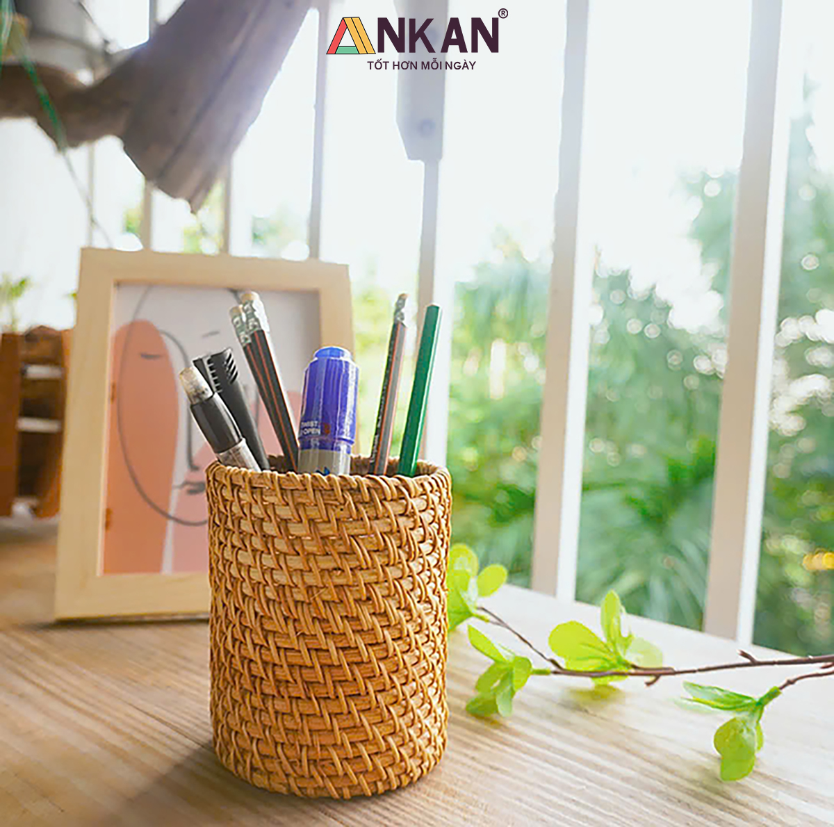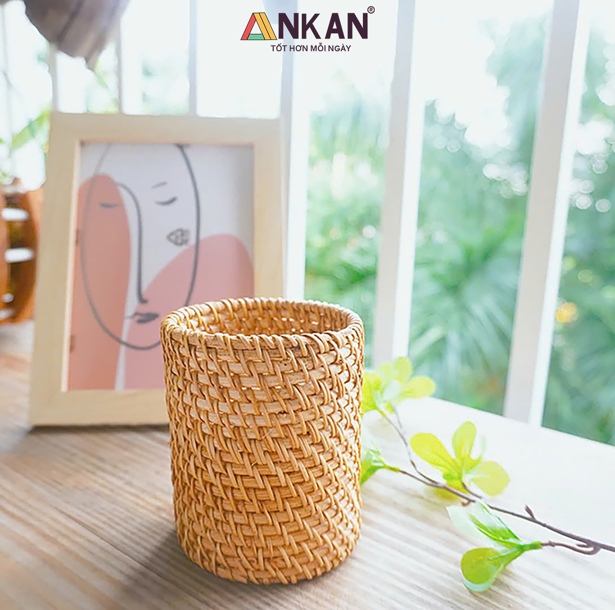 Cốc mây tự nhiên dùng để đựng bút và đồ dùng văn phòng