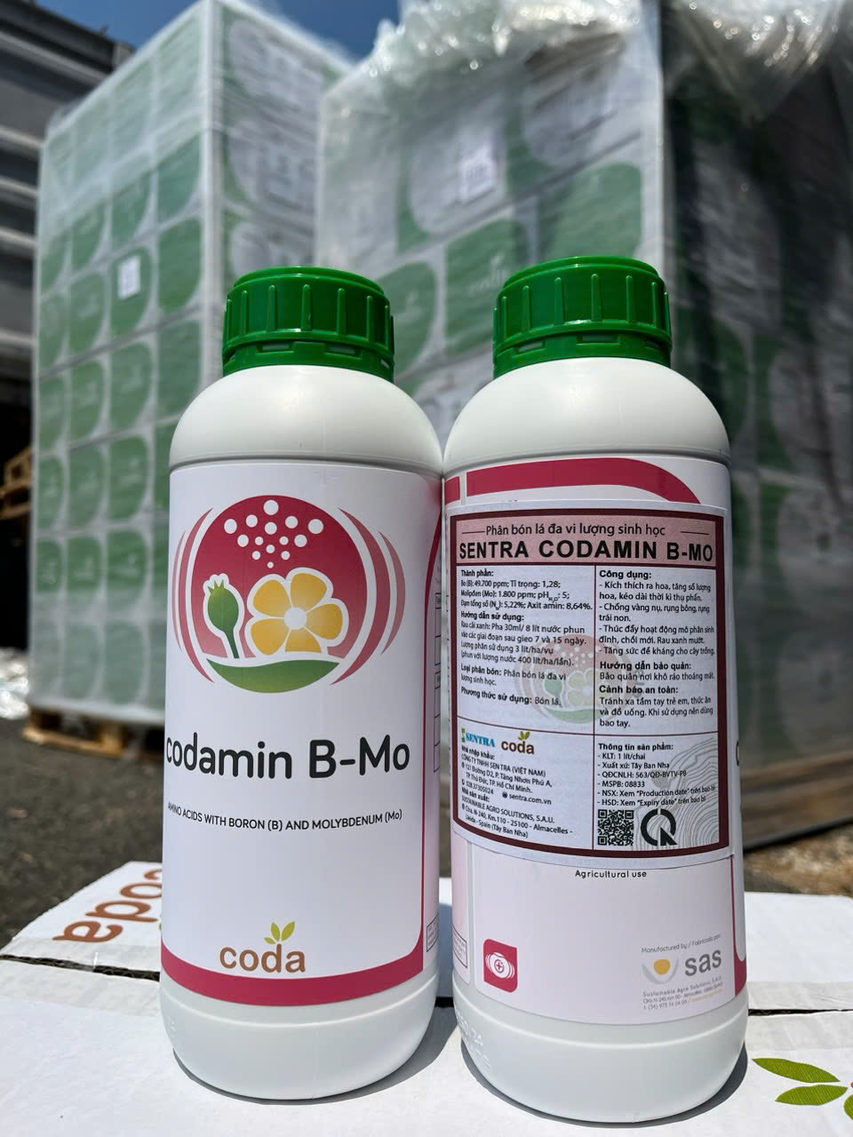Mua tại Tiktok- Phân bón lá Codamin B-Mo *Thành phần định lượng: CÔNG THỨC ĐẶC BIỆT [AMINO ACDS + BORON (B) + MOLYPDEN (Mo)] N: 5.22 % w/w, B: 49.700 ppm, Mo: 1.800 ppm, Amino Acids: 8.64 % w/w
