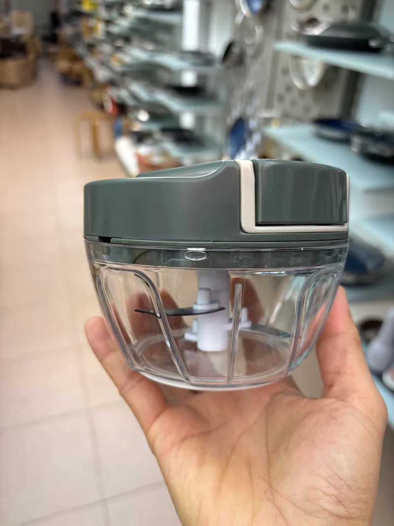 Cắt, xay nhuyễn đối với các loại hành tỏi, ớt , rau, thảo mộc, hành tây, các loại hạt...bằng tay chỉ với thao tác kéo dây cắt cực dễ và tiện Các mẹ làm đồ