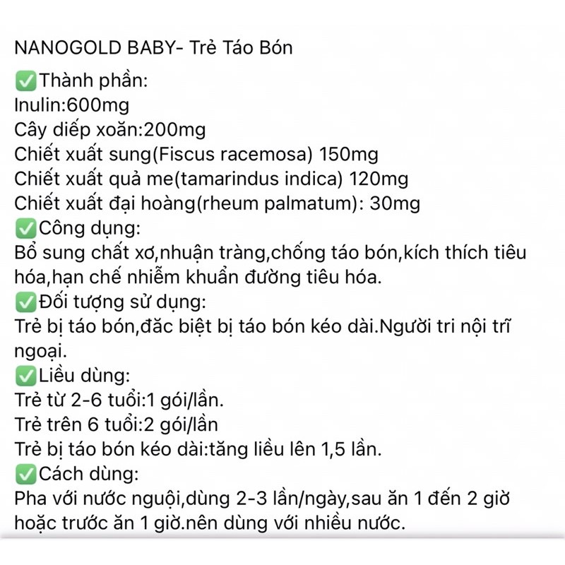 ✨Cốm táo bón NanoGold Baby Vinh Thịnh Vượng VV, hộp 20 gói, bổ sung chất xơ, ngừa táo bón cho trẻ