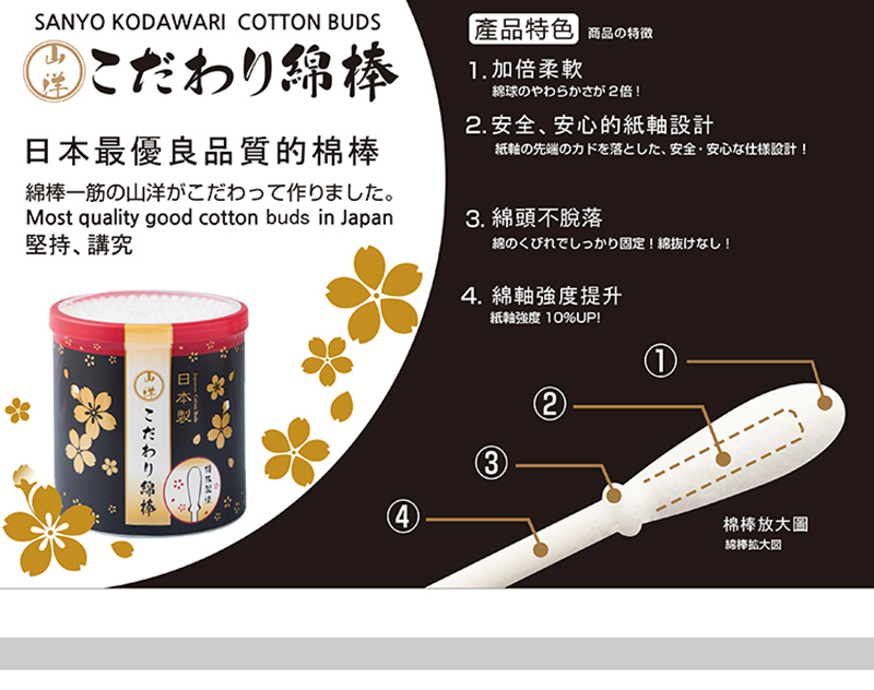 HỘP 110 TĂM BÔNG NGOÁY TAI MỀM KHÁNG KHUẨN, AN TOÀN SANYO - HÀNG NỘI ĐỊA NHẬT BẢN (Sản phẩm được nhập khẩu chính hãng từ Nhật Bản) ■ Xuất xứ: Nhật Bản / MADE IN